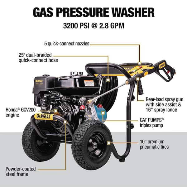3200 PSI 2.8 GPM Gas Pressure Washer with Honda GX200 Engine & CAT Pump, Reliable Residential Cold Water Power Washer